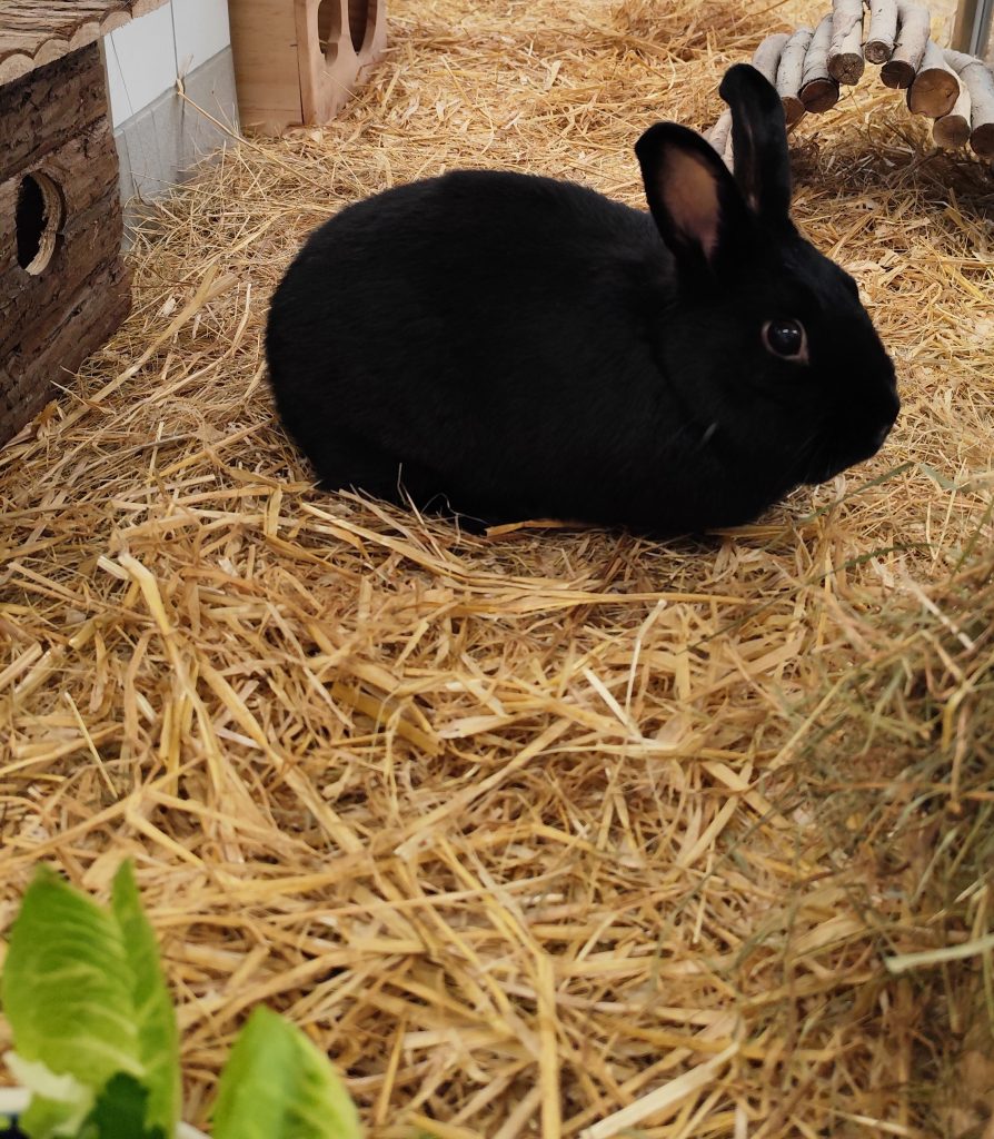 Das hübsche schwarze Kaninchenmädchen Gabi ist 4 Jahre alt und lebt auch bei uns in Innenhaltung. Natürlich, wenn das Wetter es zulässt, kann sie an eine schöne Außenhaltung gewöhnt werden.